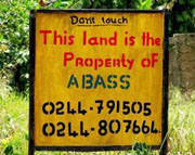 | A sign marks private property in Angola. |