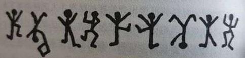 “就是他,我看见他画的。还是一切都按顺序跟您说吧。上次我来拜访您以后,回到家里的第二天早上,头一件见到的东西就是一行新的跳舞的人,是用粉笔画在工具房门上的。这间工具房挨着草坪,正对着前窗。我照样临摹了一张,就在这儿。"他打开一张叠着的纸,把它放在桌上。下面就是他临摹下来的符号: